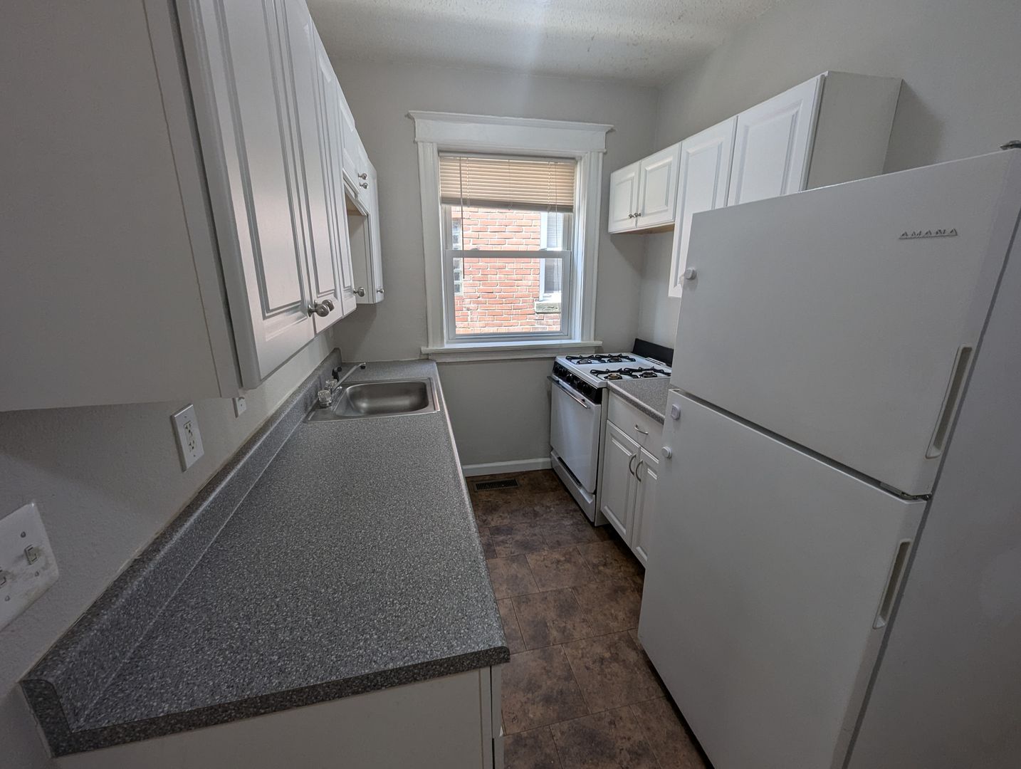 The kitchen brings together original charm and modern updates: a disposal for quick cleanup, plenty of cabinet storage, and a breakfast nook that easily doubles as a laptop spot or a low-key dinner space.