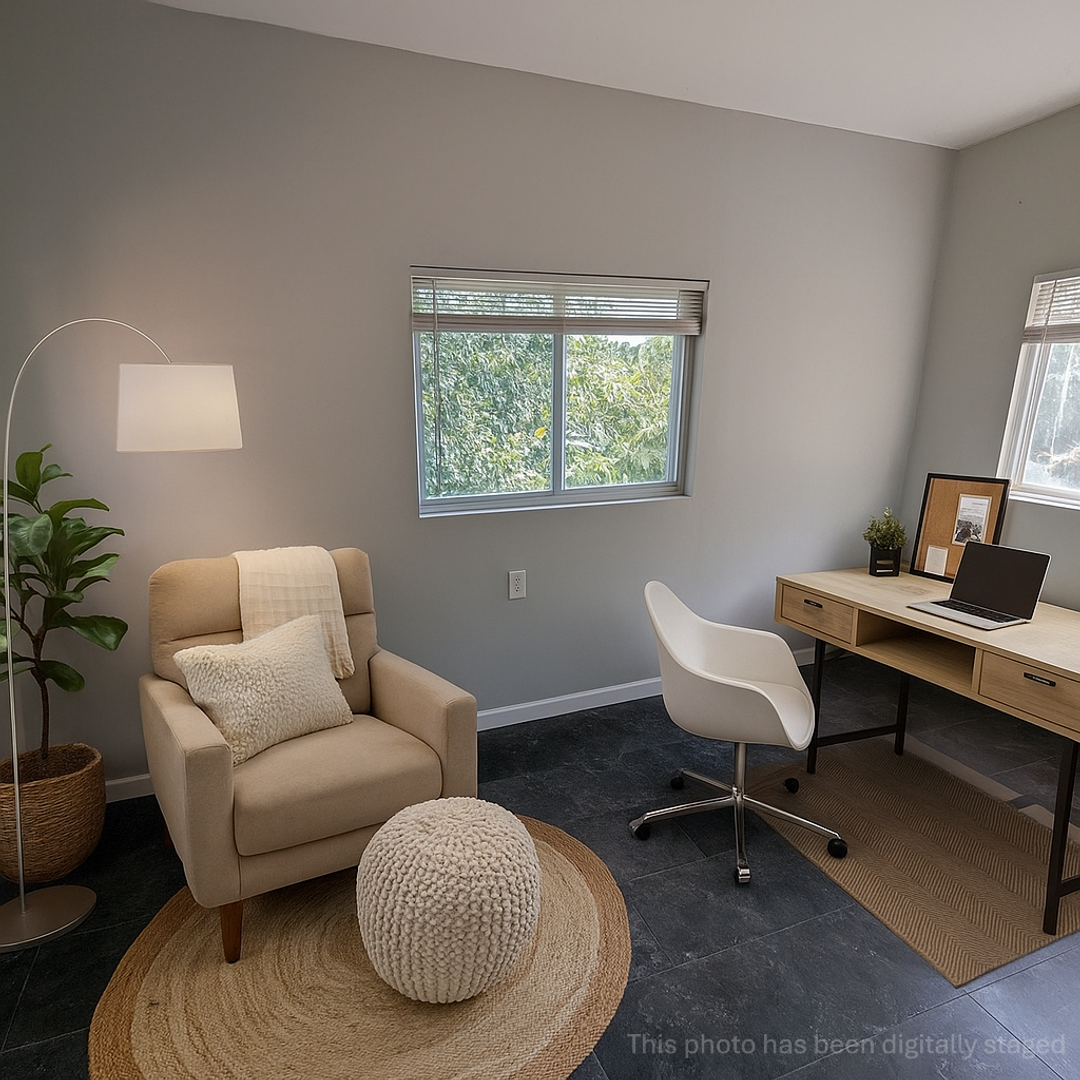 Inviting Sunroom: Enjoy a bright and airy sunroom at the back of the apartment — perfect for relaxing, reading, working from home, or sipping your morning coffee.