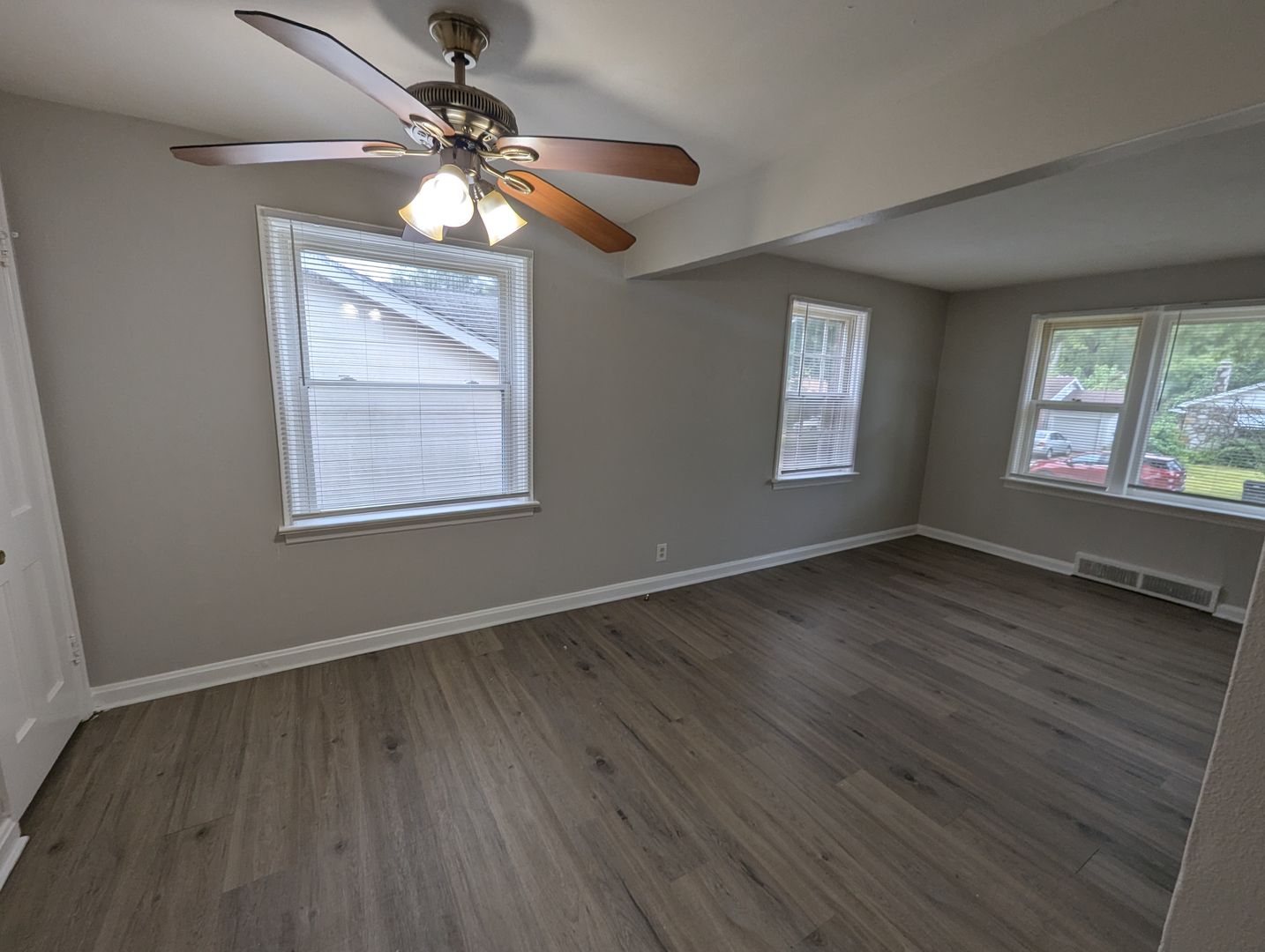 Inside, the eat-in kitchen is cozy and practical—perfect for pancake Sundays or late-night snacks. You’ll stay cool with ceiling fans throughout, and the new flooring gives the whole home a fresh, modern feel that’s a breeze to keep clean. Plus, this place is absolutely soaked in natural sunlight, giving every room that golden-hour glow.
