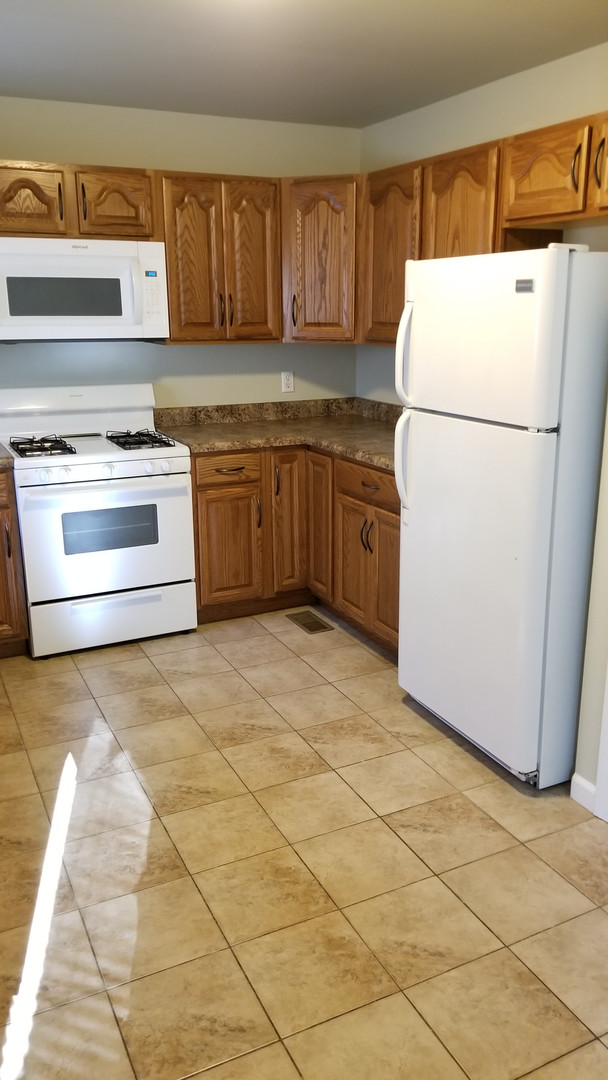 The kitchen features beautiful dark wood cabinets and a dedicated breakfast area, ideal for morning meals, work-from-home setups, or casual dining. Out back, a patio area provides more space to relax, grill, or enjoy the outdoors.