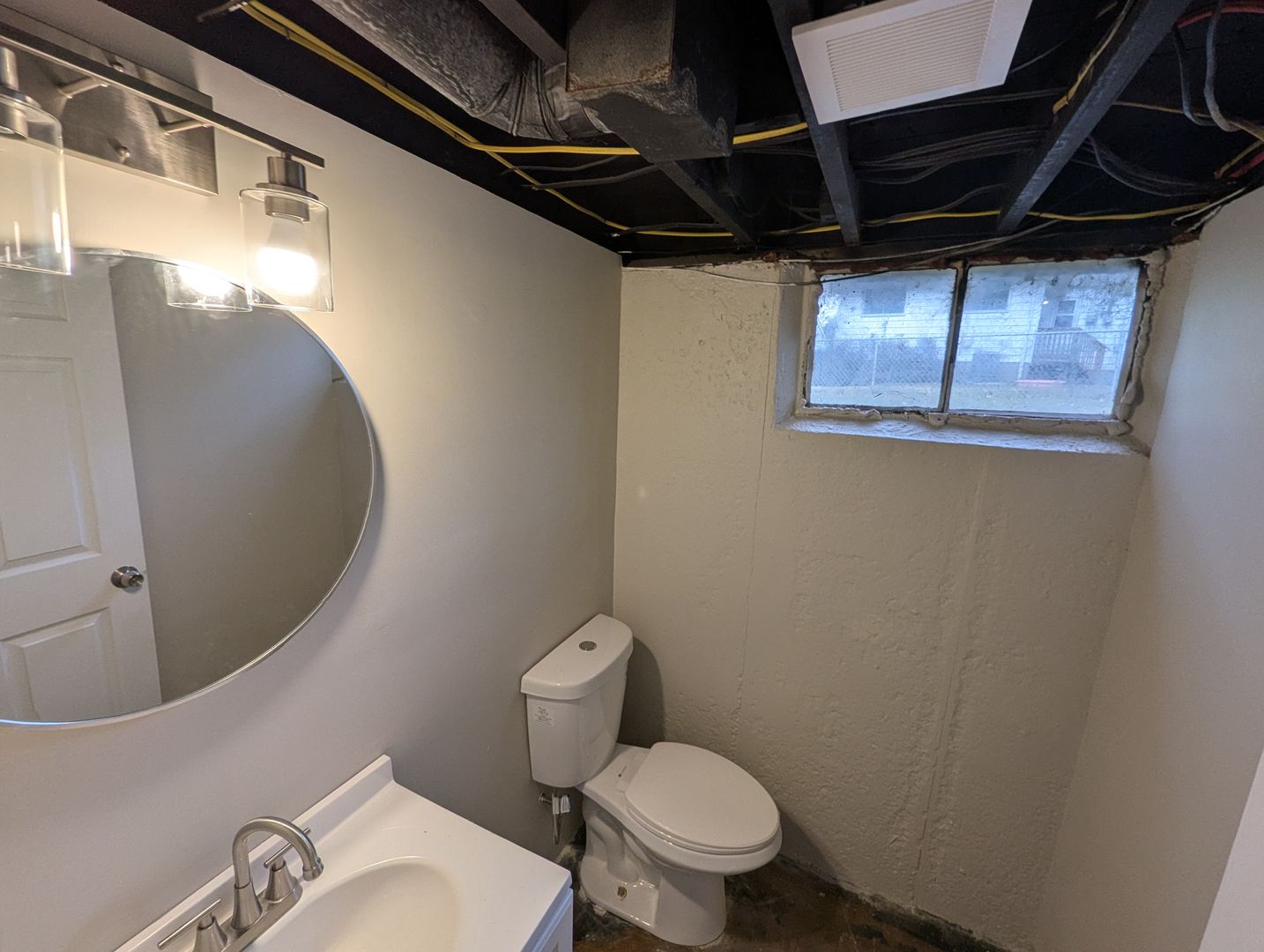 Downstairs you will find what truly makes this home stand out. The basement has been partially finished, with moisture-sealed resin floors, two spare rooms, and a bathroom - plus a complementary washer and dryer. There is so much space for storage here, and one of the rooms could easily be an office or additional work area.