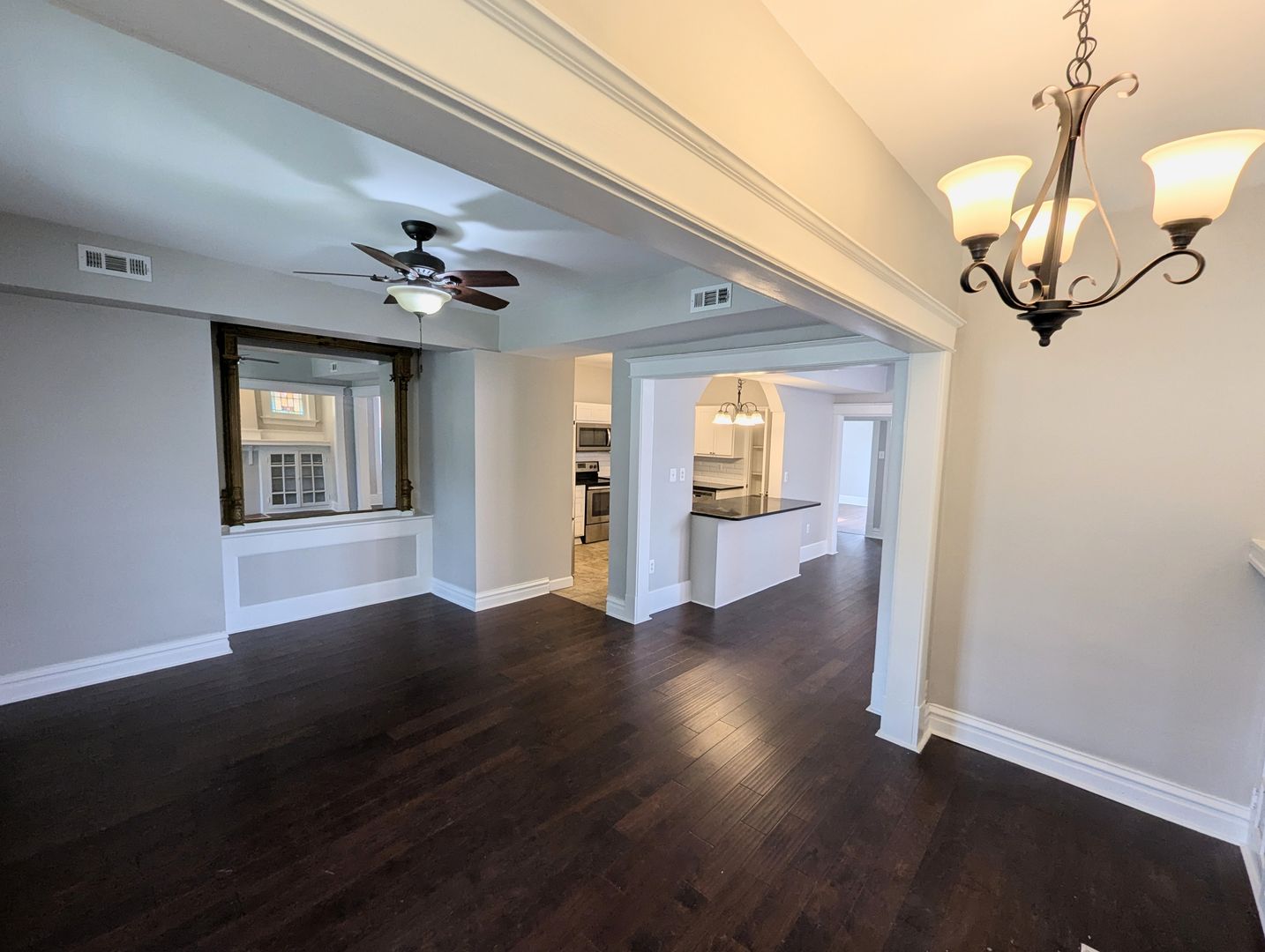 Inside, you’ll find hardwood floors throughout, a decorative fireplace, and vintage fixtures that give the home its own unique character. The layout features a separate dining room and a breakfast bar, so whether you're hosting friends or pulling all-nighters with takeout, you’ve got options.