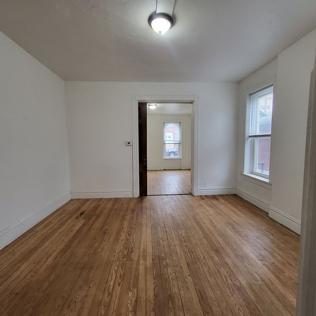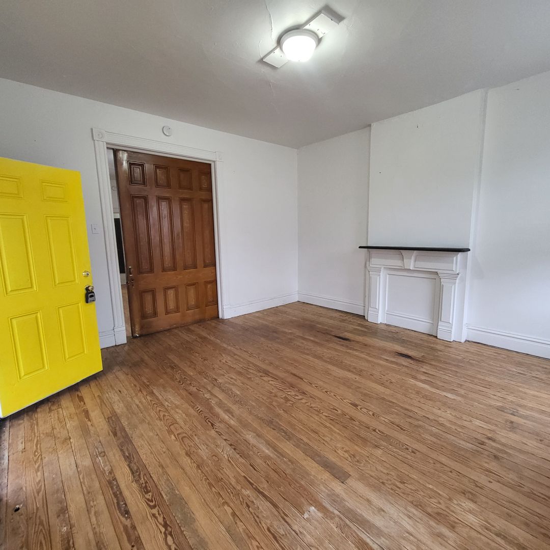 You come home through a sunny yellow front door, the kind that quietly lifts your mood before you even step inside. This first-floor one-bedroom sits in a classic four-family flat in Benton Park West, where historic charm and everyday comfort live side by side.