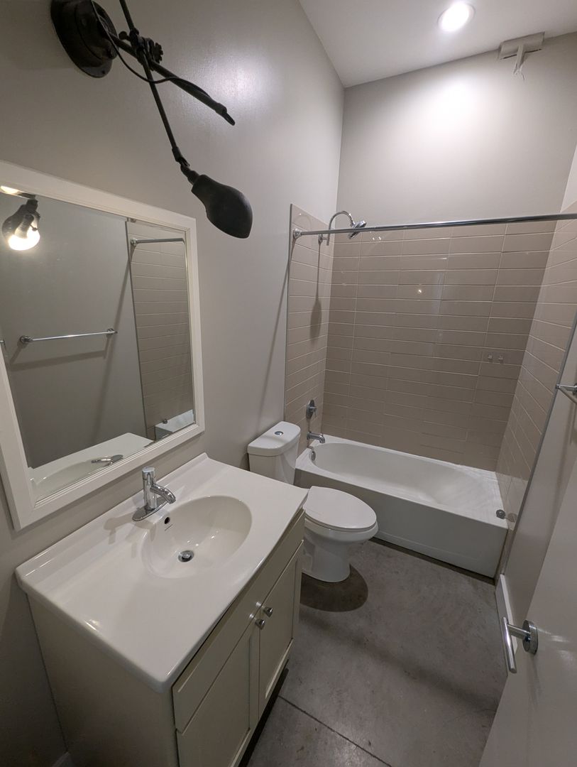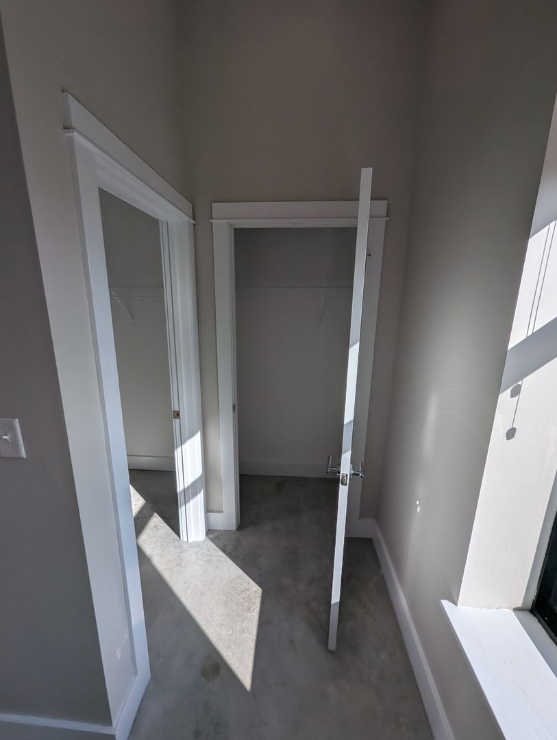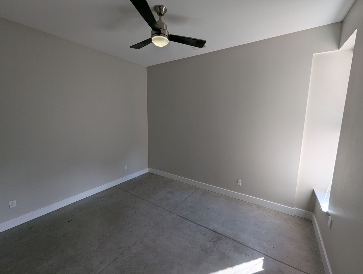 Each bedroom is thoughtfully designed, with the primary suite featuring its own private bathroom, while a second hall bathroom offers convenience for guests or roommates. You'll love the concrete floors—modern, durable, and super easy to clean.