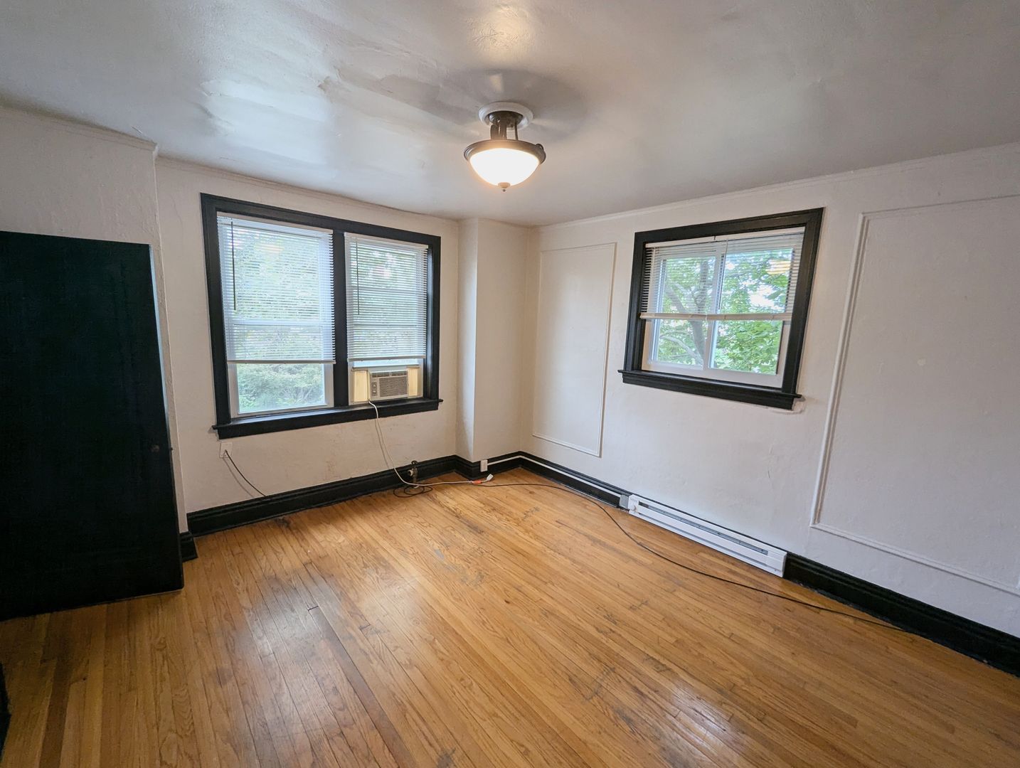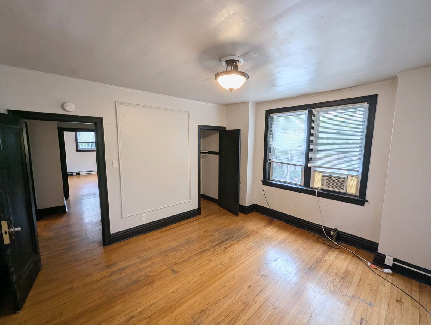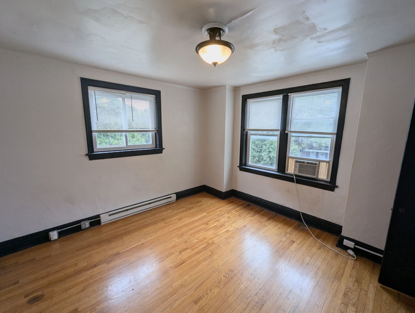 Both bedrooms offer ample space, with one featuring a walk-in closet to accommodate your wardrobe with ease. A bathroom adorned with vintage fixtures adds a unique touch, while a window AC unit ensures seasonal comfort. With an in-building coin-operated laundry facility, everything you need is close at hand. Make yourself at home in this bright and stylish space where convenience meets city living.