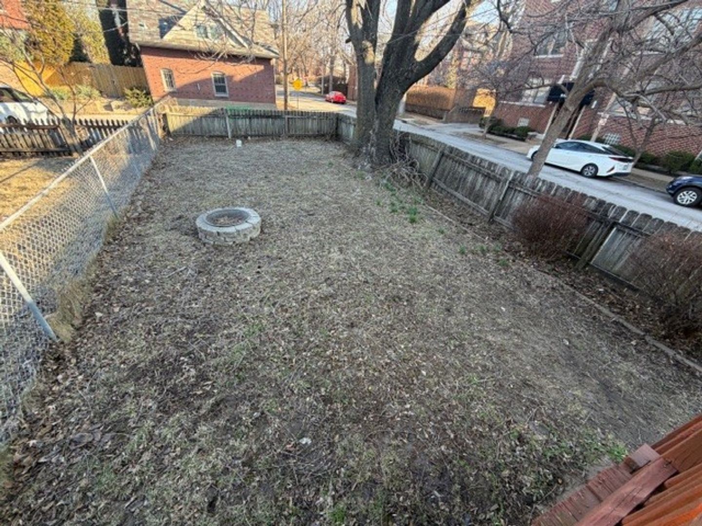 Spacious back deck which is ideal for grilling or enjoying fresh air, a large fenced in yard with a built in fire pit.